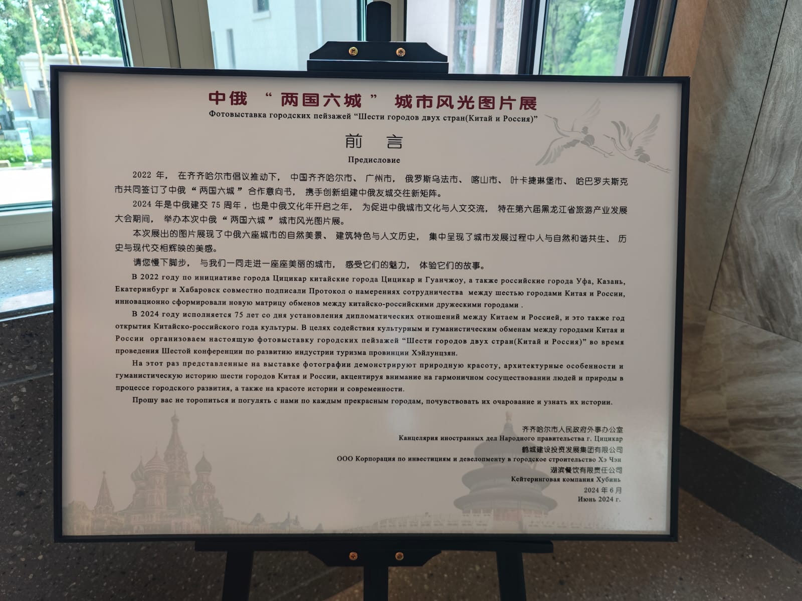 С июня по июль текущего года в дни проведения шестой Конференции по развитию индустрии туризма провинции Хэйлунцзян проводится фотовыставка «Шесть городов двух стран», приуроченная к 75-летию дипломатических отношений между Китаем и Россией.